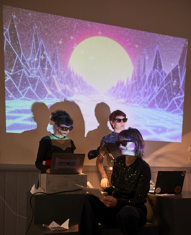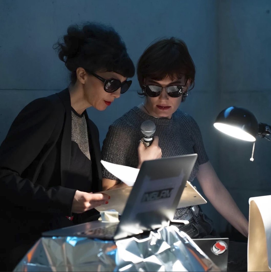 Bild 1,2: Lecture Performance Widersprüche wirken lassen, im Rahmen der Wartenau Assembly und Ausstellung „Archiv der Vermittlung. Das Unarchivierbare aktualisieren“, 04.07.2023, Aula Wartenau HFBK Hamburg, Fotocredits: Volker Renner